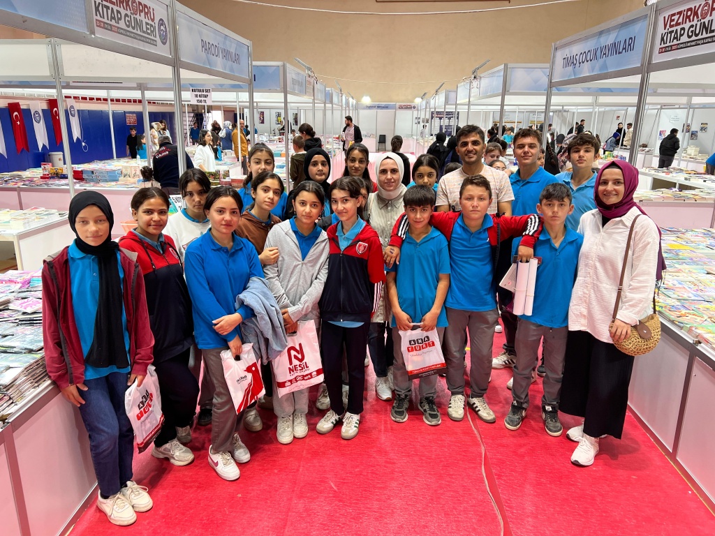 Okulumuz öğrencileri, öğretmenlerimizin rehberliğinde Vezirköprü Kitap Fuarı'na katıldı. Kitaplarla iç içe geçen bu özel günde öğrencilerimiz, fuar alanında farklı yayınevlerinin stantlarını gezerek ilgi duydukları kitapları inceleme ve satın alma imkânı buldular.